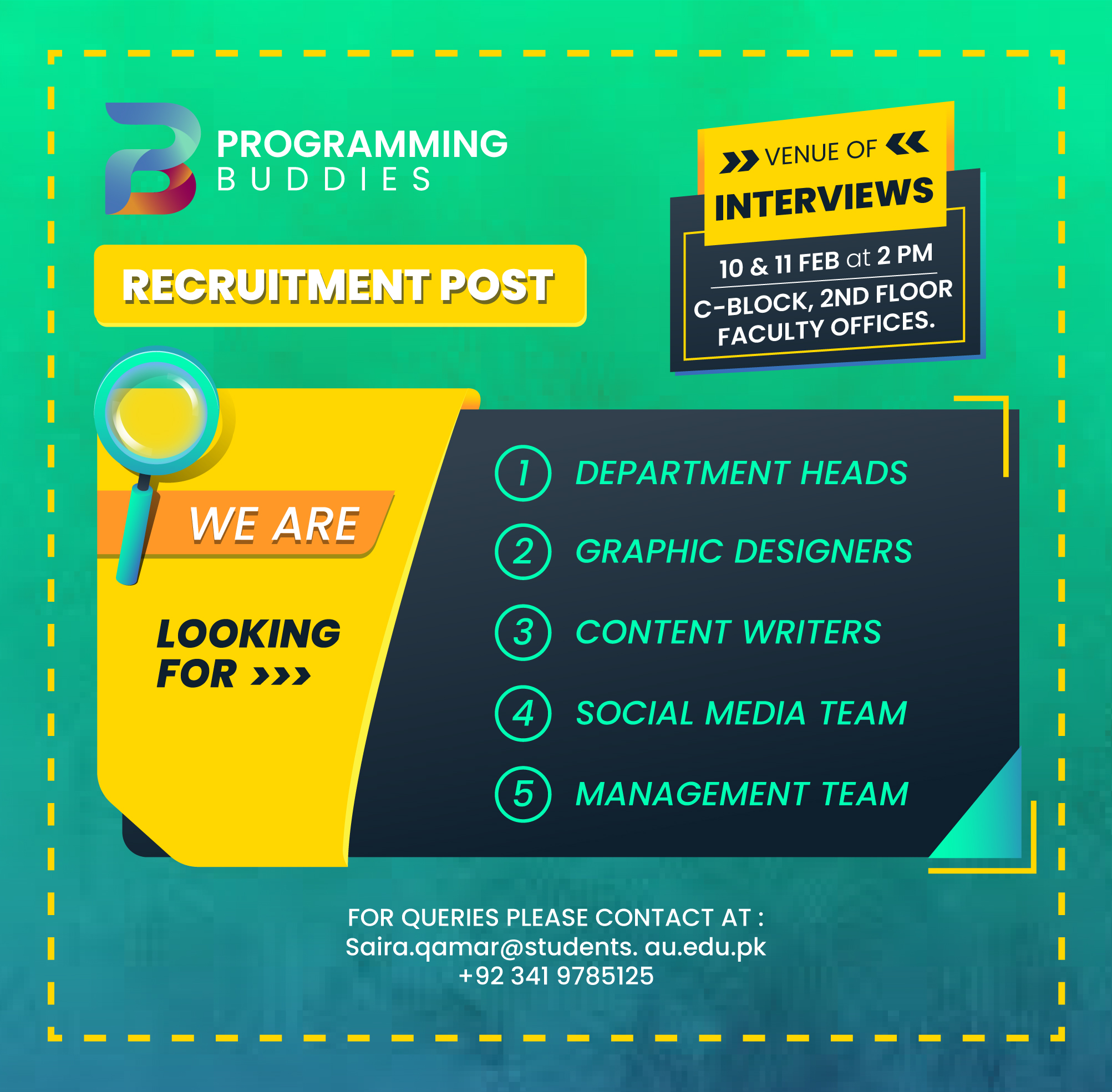 I am doing good in my studies and getting highest grade in my batch due to which I got 50% scholarship in three semester. Further I am General Secretary and Graphic Head of Programming Buddies, society in air university.